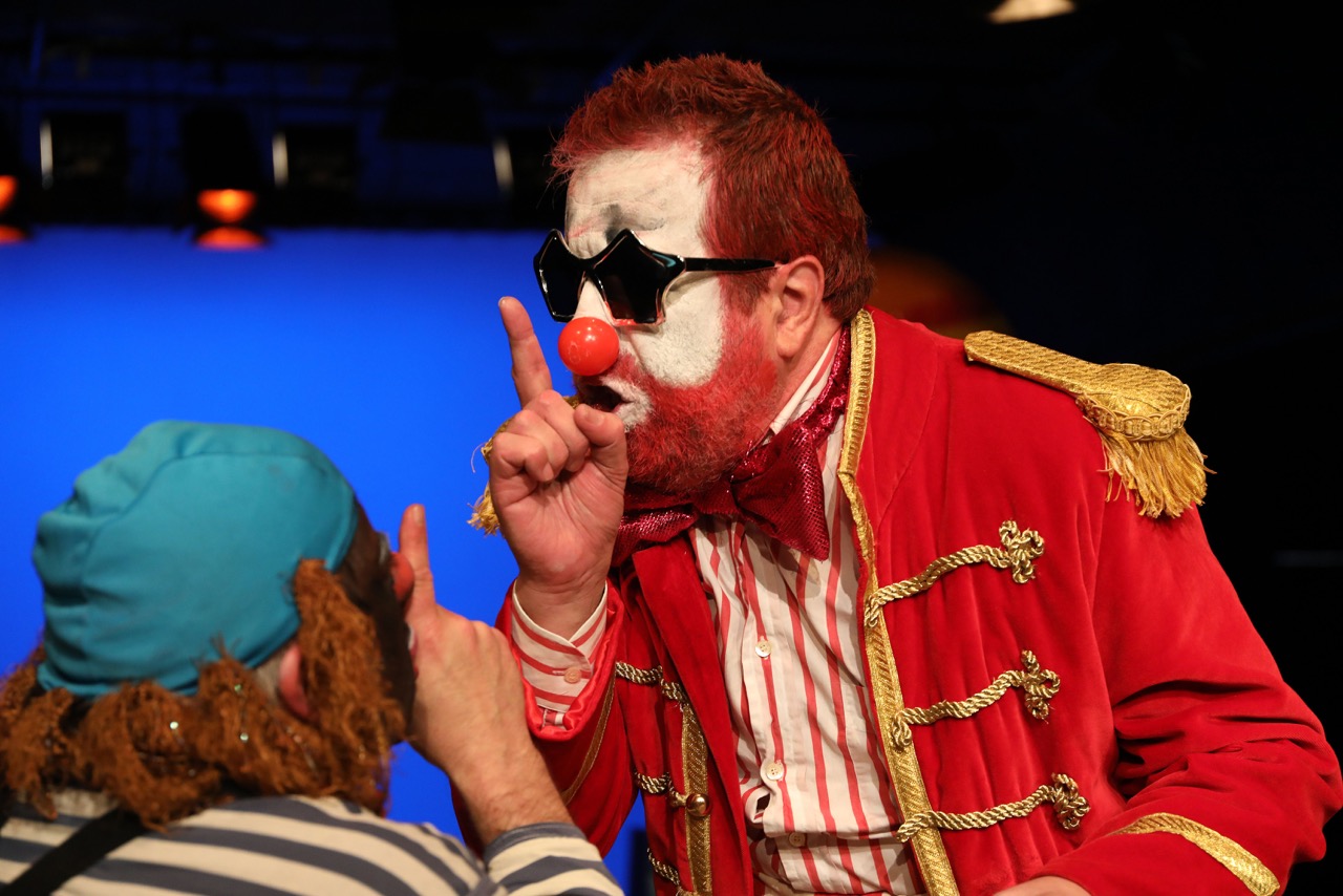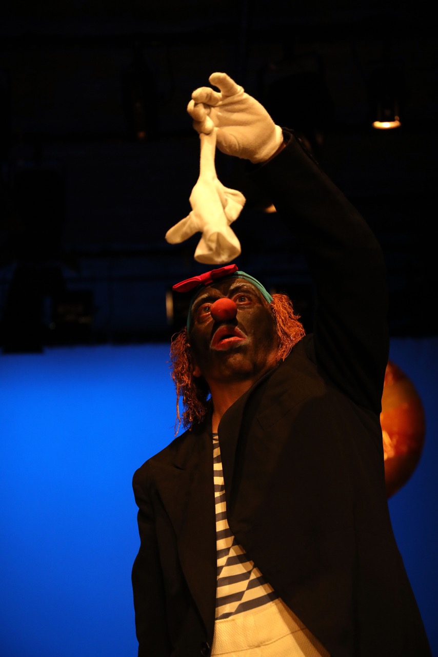 A ideia nesta criação é de construir uma história com gestos, clownesca, quer dizer em linguagem de palhaços, feita com os gestos e os movimentos que são o vocabulário dos palhaços, dos clowns — cada grupo tem uma maneira de comunicar própria, uma língua, um vocabulário, os bichos também, o papagaio, ou o cão, os golfinhos ou as baleias, todos comunicam, têm vocabulários, os seus alfabetos — quando um cão dá à cauda de uma determinada maneira está contente.